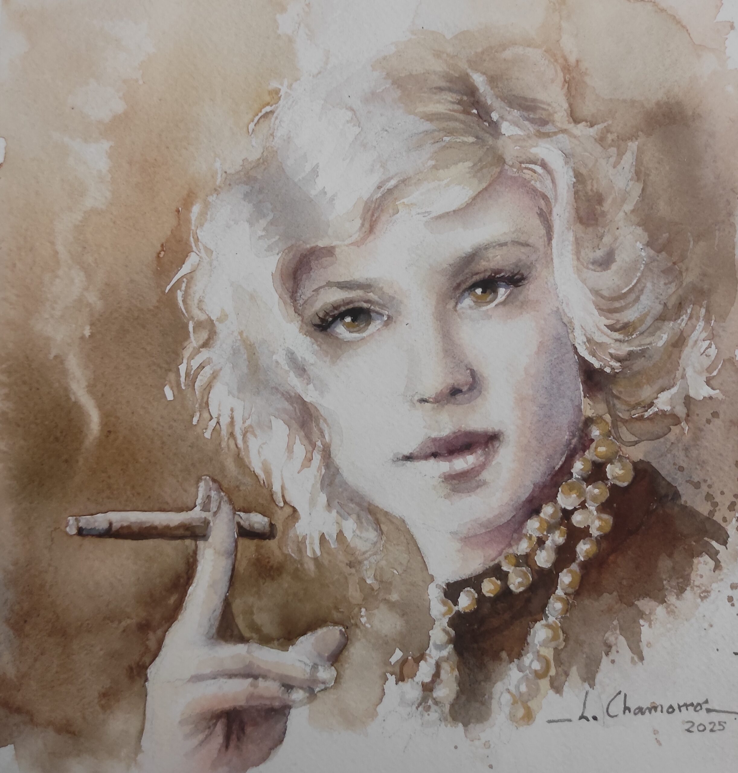 Once mastered these concepts, we move on to the complete drawing on the watercolor paper. The watercolour is divided into two phases: one dedicated to the background, where you’ll learn to create the cigarette smoke and work with negatives and then the face, where you’ll create an expression that conveys.